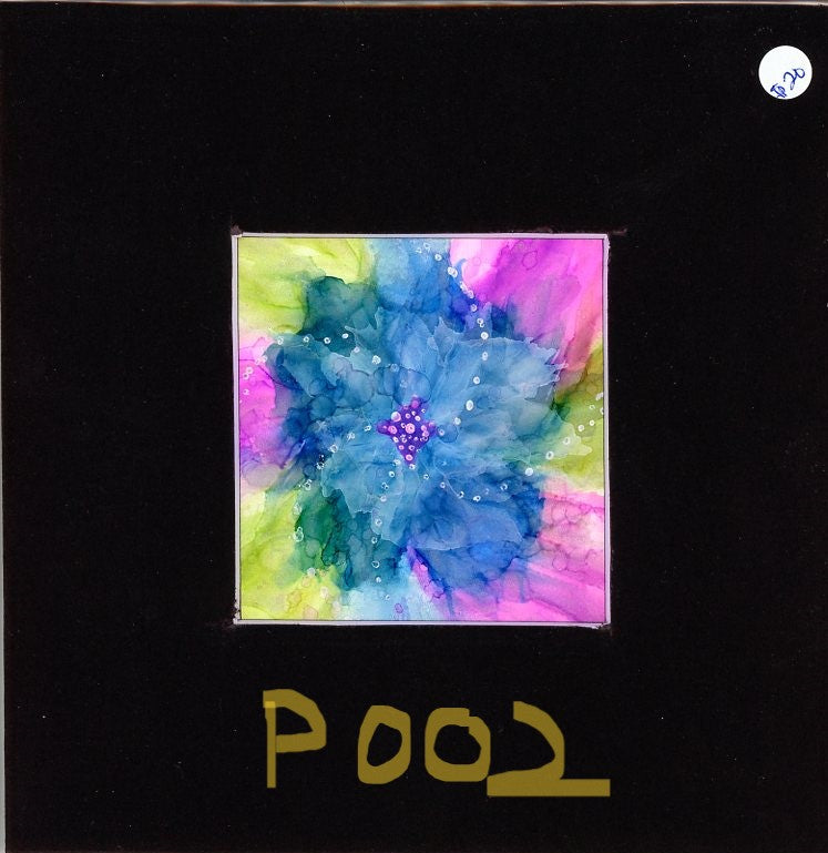 4x4 Alcohol Ink Painting with 8x8 black mat. Primary colors: pinks, greens, blues with white accents |