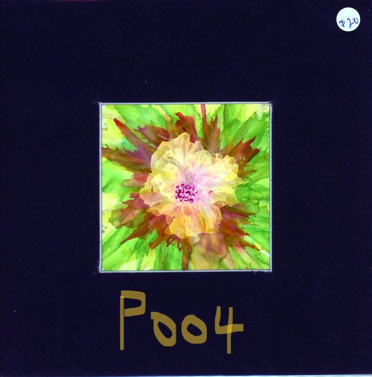 4x4 Alcohol Ink Painting with 8x8 black mat. Primary colors: greens, yellows, & browns |