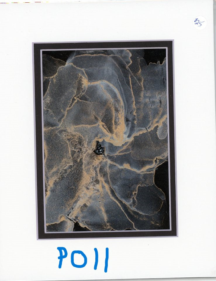 5x7 Alcohol Ink Painting with 8x10 white with black double mat. Primary colors: white and gold on black background |